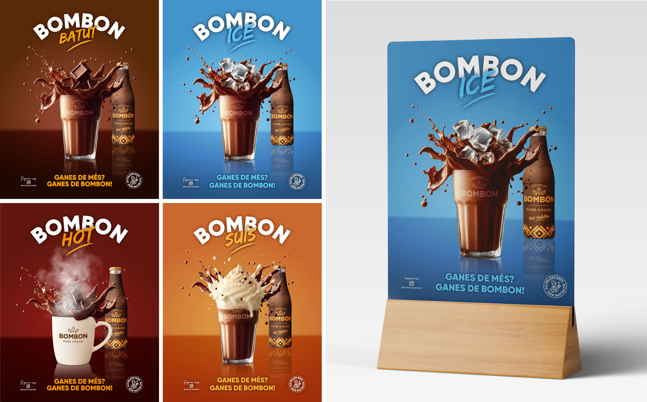 Sota el claim “Ganes de més, ganes de Bombón!”, MITICA ha desenvolupat aquesta campanya treballant un relat de marca que transmet superioritat i desig. Per donar-li vida, s’ha creat una col·lecció de visuals capaços d’activar el producte durant tot l’any: ICE per refrescar l’estiu, HOT per escalfar l’hivern, CHEERS com a proposta festiva i atemporal, i el clàssic BATUT, l’essència original.