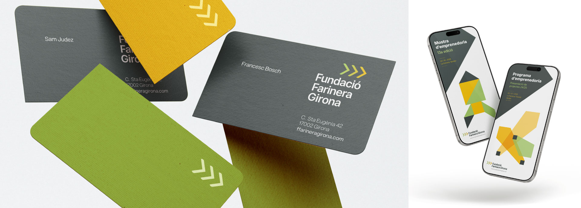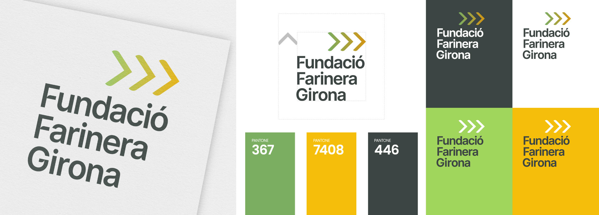 La Fundació Farinera Girona està representada en part per una emblemàtica construcció on hi te la seu: la Farinera Teixidor, de l’arquitecte Rafael Masó. Aquest fet no pot passar inadvertit en el plantejament d’un storytelling de marca que proposa un naming lligat explícitament al nom de l’edifici. La marca de la fundació ha d’explicar una història on el vincle entre la Farinera Teixidor i la Fundació Farinera Girona reforci aquests arguments, valors i personalitat.